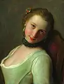 NK3261 | P.A. Rotari | Jonge vrouw met zwarte kraag en bloemen in het haar, bekend als "het wufte meisje" | 2720 A | non-museum institution |