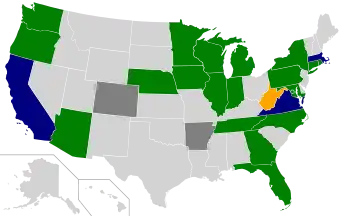 AZ, CT, DC, DE, FL, GA, IA, IL, IN, MD, ME, MI, MN, PA, NC, NE, NY, OR, RI, TN, WA, WI