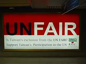 Under Chen Shui-bian, banners supporting Taiwan joining the UN were common in government buildings, such as Taipei Main Station.