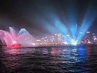 The 2009 East Asian Games opening ceremony was held on December 5, 2009 at Tsim Sha Tsui, Hong Kong. The opening began at 8pm at the Hong Kong Cultural Centre on a floating stage set up at Victoria Harbour. The production team was the same one that ran the 2008 Beijing olympics opening ceremony.[1][2] The ceremony involved 44 decorated vessels and cost HK$40 million (about US$5 million) to stage, lasting 90 minutes.[3][4] Tickets to the opening ceremony was sold at HK$1000.[2]