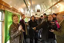 The Left also campaigned heavily on federal issues, criticising the social policy of both the federal CDU and former SPD governments, ongoing German involvement in the War in Afghanistan, and the consequences of the Global Financial Crisis.[8] Despite being mostly a federal responsibility, employment and labour policy were also an important issue in the election; the left-wing opposition parties called for the establishment of a minimum wage, which the CDU and FDP opposed. Both Rüttgers and Kraft distanced themselves from controversial federal social policy such as the Hartz IV programme.[9]