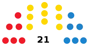 The following table lists party control in the Island Cabildos.[1] Gains for a party are displayed with the cell's background shaded in that party's colour.