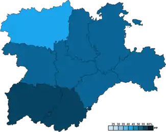 ![]() Constituency results map for the Cortes of Castile and León | ||||||||||||||||||||||||||||||||||||||||||||||||||||||||||||||||||||||||||||||||||