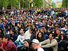 The final game of the series attracted huge crowds on the streets of Vancouver who gathered to watch the game on outside monitors and cheer the home team on. Shortly before the game ended with the apparent loss for Vancouver, fires were set on West Georgia Street. After the game ended, cars were set on fire and fighting broke out. Soon, a riot was in progress in downtown Vancouver, with police cars set on fire, shops looted and attendant destruction of property. The damage was expected to be greater than the 1994 Vancouver riots that occurred after Vancouver lost the Stanley Cup Finals to the New York Rangers.