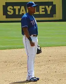 The Rangers' biggest free agent move for the 2011 season would be the signing of third baseman Adrián Beltré. The six-year, $96 million deal would force incumbent veteran Michael Young into his fourth position with the Rangers.[7] Although Young was hesitant to make another position move, Young told the Rangers and the media he was willing to switch to designated hitter in order for the Rangers to sign Beltre.[8] With the signing of Beltre and move of Young, the Rangers did not continue to attempt to re-sign Guerrero, who would sign a one-year deal with the Orioles.
