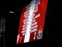 The Emirates Stadium scoreboard after the 7–3 victory over Newcastle United on 29 December 2012