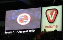 The Madjeski Stadium scoreboard dictating the historic Arsenal win over Reading in the League Cup on 30 October 2012