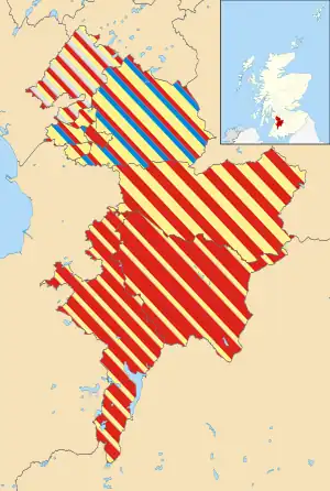 Note: "Votes" are the first preference votes. The net gain/loss and percentage changes relate to the result of the previous Scottish local elections on 3 May 2007. This may differ from other published sources showing gain/loss relative to seats held at dissolution of Scotland's councils.[1][2]