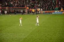 Moyes looked to appoint his own coaching staff as he started his reign.[4] In May 2013, assistant manager Mike Phelan and goalkeeping coach Eric Steele left the club. First-team coach René Meulensteen followed a month later. All three had served in their respective positions since 2008, while Phelan and Meulensteen had worked in other roles at United since 2001.[4][5] In their place, Moyes brought in staff from Everton to join him in July, appointing Steve Round as assistant manager, Chris Woods as goalkeeping coach and Jimmy Lumsden as coach.[6] In July, veteran United winger Ryan Giggs became a player-coach, while former United and Everton player Phil Neville was also added to the coaching staff.[7]