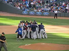 The Indians celebrate after clinching a wild card slot