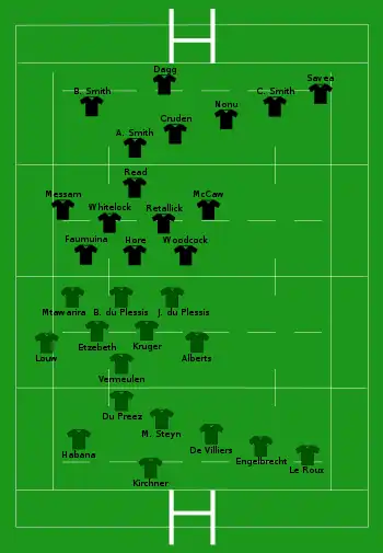 The Championship was retained by New Zealand after a 38-27 win against South Africa at Ellis Park on 5 October, keeping their 100 percent winning record in the expanded championship.[3][4][5]