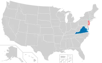 Legislative elections were held for the New Jersey Senate, New Jersey General Assembly, and the Virginia House of Delegates. In New Jersey, Democrats retained control of their majorities in the Senate and General Assembly.[43] Republicans held a majority in the Virginia House of Delegates.