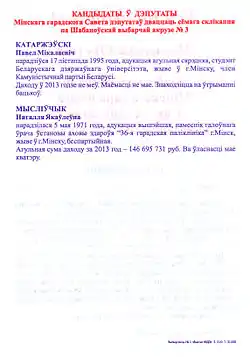 6. 1 2 3 "Сведения о выдвижении кандидатов в депутаты местных Советов депутатов (in Russian - Information on candidate nomination for Local Councils deputies)" (PDF). Archived from the original (PDF) on 2014-03-08. Retrieved 2021-02-16.