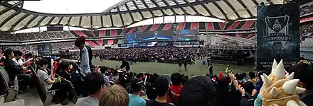 The 2014 League of Legends World Championship was an esports tournament held from September 18 to October 19, 2014, for the multiplayer online battle arena video game League of Legends. It was the fourth iteration of the League of Legends World Championship, an annual international tournament organized by the game's developer, Riot Games. Matches were held in Taipei, Singapore, Busan, and Seoul, with grand finals being at the Seoul World Cup Stadium in Seoul, South Korea.[2] The 16 teams qualified by either winning a major professional league or a regional qualifying tournament. There was a 16 team round-robin group stage followed by an 8 team single elimination bracket. The games were officially streamed on Twitch and Azubu in several languages and the finals were aired online on ESPN3.