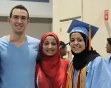 A public funeral was held on February 12 at North Carolina State University. It was hosted by the Islamic Association of Raleigh; an estimated 5,500 people attended.[55] NCSU's Muslim Student Association also held a prayer service and candlelight vigil the same evening on the Brickyard, the central plaza on the main university campus. An estimated 3,000 students, faculty, staff and members of the local community attended the vigil despite the cold and strong winds which kept the candles from being lit; instead, cellphone lights were used.[56][57] Governor McCrory and the chancellors of N.C. State and UNC Chapel Hill attended the vigil and delivered remarks.[58] Speaking at the vigil, Farris Barakat, also an alumnus of N.C. State University, discussed his deep family ties to the university and his hopes that it "means something to each and every student at NC State. I hope that means we somehow touched your heart in a way that you can live in their legacy and you can take what they did that was good and you can live it in your life. It is the best thing you can do for my family now." His sister Suzanne Barakat, flashing the wolf-hand sign popular among N.C. State students and alumni, spoke of her younger brother's commitment to serving others, and his wife's and sister-in-law's volunteer and charitable contributions to the greater community. "The message that we want to share is spread love, spread awareness because these three people were nothing but love and kindness. I'm sure they would want you to continue that for them."[57]