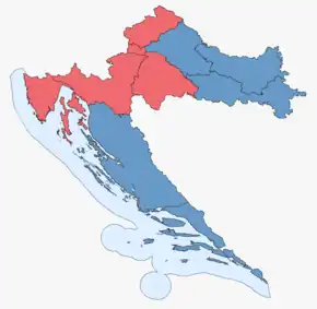 | Croatian Christian Democratic Union, Croatian Democratic Party, National Democrats | HKDU, HDS, ND | 0 | 0 | I, III, V–VII, IX–XI | ||||