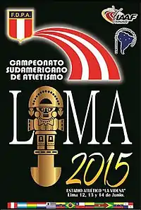 The 2015 South American Championships in Athletics (Spanish: Campeonato Sudamericano Mayores 2015) was the 49th edition of the biennial athletics competition between South American nations. The event was held in the Peruvian capital of Lima from 12 to 14 June at the Videna Stadium.[1] It was the eighth time Lima hosted the event, having last done so for the 2009 edition.[2] A total of 44 events were held, evenly divided between the sexes, continuing with the event programme established in 2001.