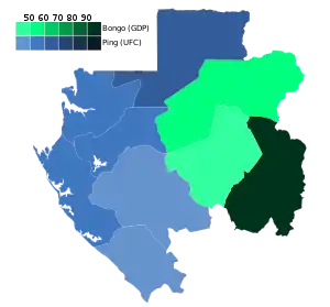 Presidential elections were held in Gabon on 27 August 2016.[1] Incumbent President Ali Bongo Ondimba ran for re-election and was challenged by former Minister of Foreign Affairs Jean Ping. On 31 August, the electoral commission proclaimed Bongo's re-election with a margin of less than two percent. Large protests broke out in the capital Libreville after the results were announced.[2] Irregularities such as Haut-Ogoou showing that 99.9% of the electorate had voted and Bongo had received 95.5% of the votes led to observers questioning the conduct of the election.