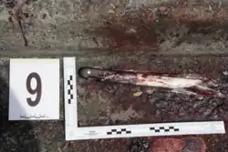 ![]() Toh Sia Guan's bloodstained knife, which he used to attack and kill Goh. | |