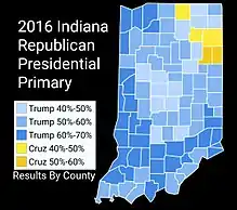 - ↑ "Indiana Election Results 2016". New York Times. Retrieved November 12, 2016.