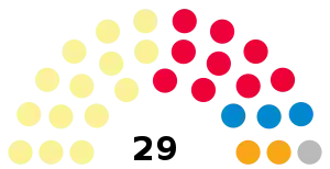 | Election | Dissolution | Seats | +/-[lower-alpha 1] | ||