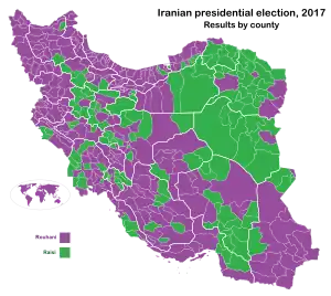 89. "Final results of presidential election by province and county" (in Persian). Ministry of Interior. 8 June 2017. Archived from the original on 10 October 2017. Retrieved 8 June 2017.