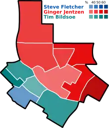 In Ward 3, DFL candidate Steve Fletcher won over Socialist Alternative candidate Ginger Jentzen, who won the most first-choice votes but did not gain sufficient transfer votes. This was the first occurrence of the initial leader not ending up the winner of an election in Minneapolis since it switched to ranked-choice voting in 2009.[47] A similar situation subsequently occurred in Ward 4 in which Johnson lost to Cunningham.