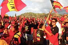 On 26 January the AMP and the Forum of National Democracy (FDN), an alliance (Portuguese: coligação) of several small parties that are not represented in parliament, concluded an agreement to unite the forces of the twelve parties in the upcoming elections. On 1 February 2018, the three parties of the AMP officially decided to work together in the election campaign as well. For this purpose, the alliance was renamed Alliance for Change and Progress.[20] In a declaration of intent, it was agreed to contest the election with a joint list and to form a coalition after the election. Other forces, such as the FDN, would also be free to join the AMP.[12] Fretilin and PD also agreed to cooperate in the election campaign. However, a joint list was ruled out by Alkatiri.[21] With the Frenti Dezenvolvimentu Demokratiku (FDD), the parties Democratic Unity Development Party (PUDD), Frenti-Mudança (FM), Timorese Democratic Union (UDT) and Party of National Development (PDN) founded another alliance on 11 December 2017.