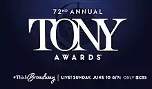 The 72nd Annual Tony Awards were held on June 10, 2018, to recognize achievement in Broadway productions during the 2017–18 season. The ceremony was held at Radio City Music Hall in New York City, and was broadcast live by CBS. Sara Bareilles and Josh Groban served as hosts.[2]