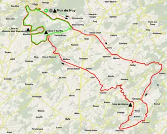 The race started and finished in Huy, following a similar route as the 2019 race. The final 32 km loop was covered twice, totalling 124 km.[2]
