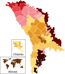 ![]() Second round results by electoral commission Sandu: 50–55% 55–60% 60–65% 65–70% 70–75% 80–85% 90–95% Dodon: 50–55% 55–60% 60–65% 65–70% 70–75% 80–85% 85–90% 90–95% | ||||||||||||||||