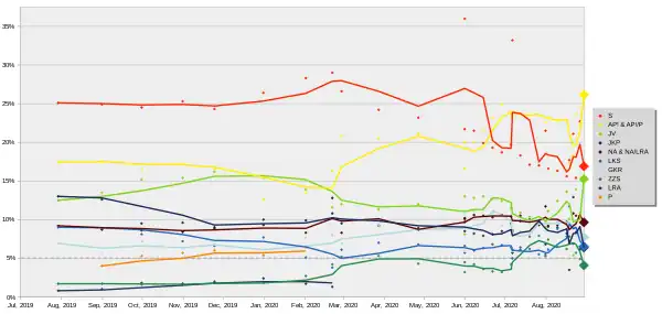 (published on 26 August 2020) SKDS/LTV 1366 22.7 8.3 10.5 22.3 10.8 6.1 4.9 6.5 2.2 3.1 1.9 0.8 0.4