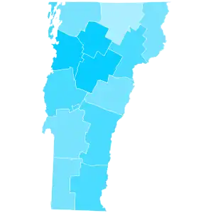 This is the first time Vermont was the strongest state for either party since 1956, when it was Republican Dwight D. Eisenhower's best state. Vermont also saw the largest increase in turnout from 2016, increasing 14.3%.[4] Biden greatly improved on Hillary Clinton's 55.7% vote share and 25.9% margin from 2016, when third-party candidates received over 14% of the vote.[5] Biden's performance was also the fourth-strongest Democratic performance in state history. Trump carried only one county, sparsely-populated Essex bordering New Hampshire, which had voted for the winner from 1980 to 2016. Consequently, Biden became the first president to win without the county since Jimmy Carter in 1976.