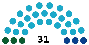 Election date was set in October 2020 for all local and Mazhilis races, including the 31 seats in the Atyrau Regional Mäslihat as the 6th convocation's term was set to expire in January 2021.[1] The new Regional Mäslihat was composed of party members elected through the newly implemented party-list proportional representation electoral system from 2018.