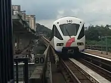 The line exclusively uses the rolling stock supplied by Bombardier's Innovia Metro since its inception, which is a driverless automated rapid transit system that operates using Grade of Automation level 4 (GoA-4).