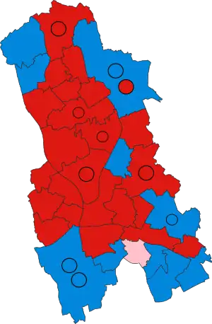 | Labour | 44 | 29 | 14 | 0 | 65.90 | 46.9 | 35,983 | +14.5 | ||