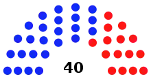 The Assembly has 80 members, two for each district. Membership of the General Assembly is as follows:[14][15]