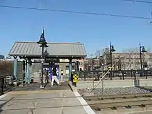22nd Street station is a station on the Hudson–Bergen Light Rail (HBLR) in Bayonne, Hudson County, New Jersey. Located between East 22nd and East 21st Streets in Bayonne, the station is the second of four stops in the city. The station contains two tracks with a set of two side platforms, an outlier from the other stations of Bayonne, which all contain island platforms. 22nd Street serves two different services, the local line between 8th Street in Bayonne and Hoboken Terminal. It also serves the Bayonne Flyer, an express between the four Bayonne stops and Hoboken. The station is handicap accessible with elevators and platform levels that meet the Americans with Disabilities Act of 1990 standards. 22nd Street opened on November 15, 2003 as an extension from 34th Street, serving as the terminal until 8th Street opened on January 31, 2011.[2][3]