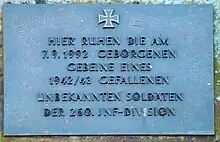 Ludwigsburg grave of an unknown soldier of the 260th Infantry Division, killed in action in 1942/43