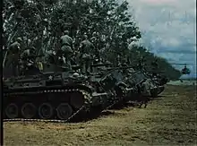Members of Battery "A", 5th Battalion, 2nd Artillery, check their M42 Dusters at Camp Radcliff, 1967