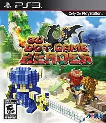 3D Dot Game Heroes[lower-alpha 1] is an action role-playing video game developed by Silicon Studio for the PlayStation 3. The game is presented using voxel-based graphics in a 3D environment to emulate the 2D graphics of earlier video games.[2] The game was published in Japan by FromSoftware in November 2009, and in North America and Europe by Atlus USA and SouthPeak Games in May 2010, respectively.[3][4] Upon release, 3D Dot Game Heroes garnered positive reviews from critics, praising the nostalgic gameplay and graphics.
