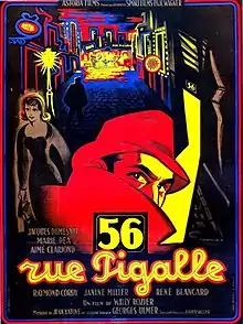 56 Rue Pigalle is a 1949 French crime drama film directed by Willy Rozier and starring Jacques Dumesnil, Marie Déa and Aimé Clariond. It has been classified as a film noir.[1] It was shot at the Victorine Studios and on location around Nice.