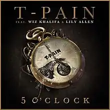 "5 O'Clock" is a song by American singer T-Pain featuring fellow American rapper Wiz Khalifa and British singer Lily Allen, which serves as the second official single from the former's fourth studio album, Revolver. It peaked at number ten on the Billboard Hot 100, becoming Allen's first top ten single in the United States.