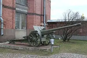 In September 1941, on the basis of Directive of the People's Commissar of Defense of the Soviet Union No. 107601 of September 22, 1941, on the basis of the 3rd Divizion of the 594th Heavy Cannon Artillery Regiment of the Artillery of the Reserve of the Main Command of the Moscow Military District, the 642nd Heavy Cannon Artillery Regiment of the Artillery of the Reserve of the Main Command was formed[1][2] (on the basis of the 1st Divizion, the 594th Cannon Artillery Regiment of the Artillery of the Reserve of the Main Command was formed, on the basis of the 2nd – the 602nd Cannon Artillery Regiment of the Artillery of the Reserve of the Main Command), according to the state number 08/111, as part of 2 divizions, three two–gun batteries of 107–mm cannons of the 1910/30 model. The regiment was formed from September 23 to October 1, 1941,[3] in the Kaluga barracks in the city of Shuya.[4] Private, junior and middle command personnel called up from the districts of the Ivanovo Oblast were sent to staff the regiment.