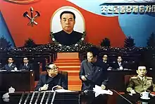 Significant at the 6th Congress was the generational shift within the WPK, with Kim Il Sung planning to formalize the position of Kim Jong Il.[6] 248 members were elected to the 6th Central Committee: 145 full members and 103 candidate members.[6] This was an increase of 76 members from the 5th Central Committee, which had 172 members.[6] The expansion of the Central Committee is a sign of an expanding party, since one Central Committee member represents 10,000 party members.[6] Of the 248 members, "139 (60 full members and 79 candidate members)" were new to the Central Committee.[6] However, compared to previous Central Committees the replacement rate was relatively low (41.4%, compared with 72.2% at the 5th Congress).[7] Only two members have sat on the Central Committee since the 1st Central Committee: Kim il-sung and Kim Il.[6] The cause of the high Central Committee replacement rate had been intra-party conflict, and the Yanan, South Korean, domestic and Soviet-Korean factions (as well as ideological opponents of hereditary succession) had been purged from the Central Committee at previous congresses.[8] Amendments to Party rules changed the name of the Political Committee back to its original name (the Politburo), and created a Presidium within the Politburo to further centralize the power of the ruling elite.[8]
