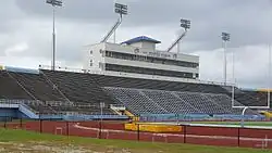 Because SU's stadium could only hold 13,000 fans in the 1970s, Baton Rouge's Memorial Stadium—which could max out at 25,000—occasionally provided an alternative venue for prominent games.[11] However, Memorial Stadium had to be used exclusively for home games while the on-campus stadium was being enlarged, beginning immediately after the 1977 home-opener.[12] In 1982, with the expansion project finally complete, "University Stadium" was renamed after Mumford.[1] 7,500 seats were added to boost capacity to 20,000[13]—along with improved lighting that allowed for televised night games.[3]
