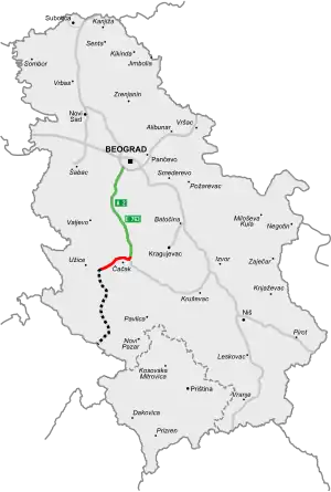 Exit list is shown just for sections between Belgrade and Požega, because the detailed route for section Požega—Boljare is currently unknown.