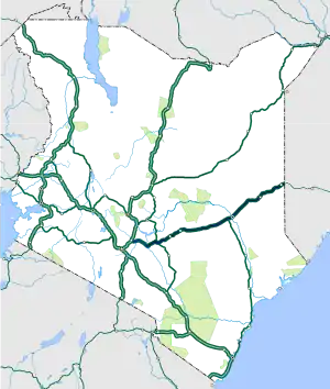 1. Kenya National Highways Authority (n.d.). KeNHA Road Network (PDF) (Map). Scale not given. Nairobi: Kenya National Highways Authority. Retrieved 13 April 2019.