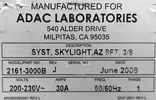ADAC Laboratories[1][2] was a Silicon Valley medical device company specialising in nuclear medicine gamma camera manufacturing and associated nuclear medicine processing computers and software. It was originally located at 10300 Bubb Road, Cupertino, California, 95014, then as the company expanded moved in turn to the following locations. 4747 Hellyer Avenue, San Jose, CA 951,[3] then 255 San Geronimo Way, Sunnyvale, CA,[4] then from ~1993,[5] 540 Alder Drive Milpitas, CA 95035. Although most people called the company ADAC or adaclabs, the name ADAC was an acronym of Analytical Development Associates Corporation.[6] It was incorporated in California on October 14, 1970.[7]