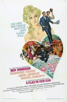 A Flea in Her Ear is a 1968 DeLuxe Color 20th Century Fox American/French[2] feature Panavision film adaptation of the 1907 play A Flea in Her Ear by Georges Feydeau in an adaptation (originally written for the stage) by John Mortimer. It was directed by Jacques Charon and the cast included Rex Harrison, Rosemary Harris, Louis Jourdan, and Rachel Roberts.